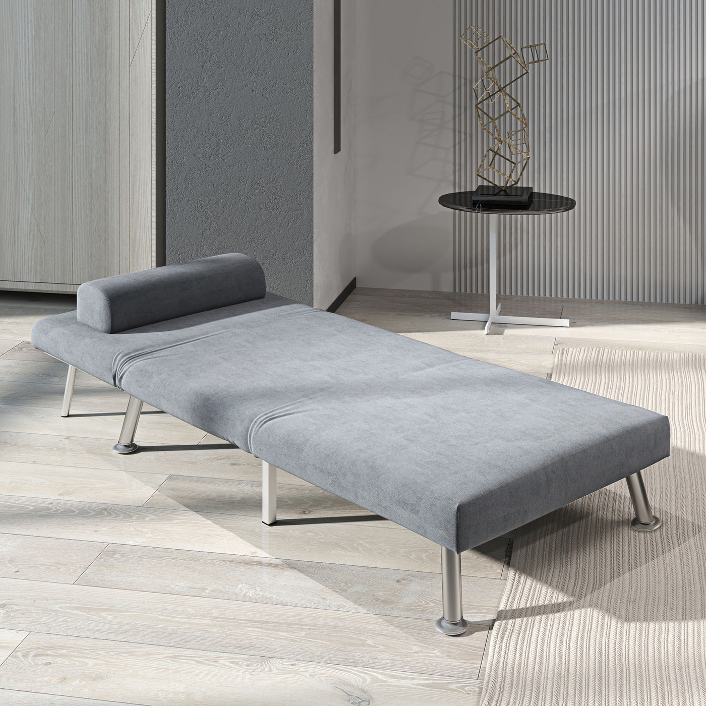 HOMCOM Single Velvet-Feel Sleeper Chair - Grey - Grey