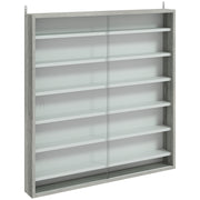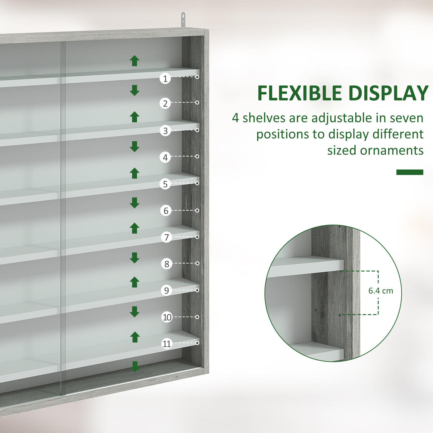 Display and organise favourite decorations with this HOMCOM wall display cabinet. It has six adjustable shelves, with 11 different positions, offering lots of space for smaller and larger items. Made from particle board, the structure is sturdy, and fitted with two sliding glass doors, keeping everything protected and allowing easy access. Easy to fix onto walls, this classic home furnishing will keep all your favourite pieces beautifully displayed.
