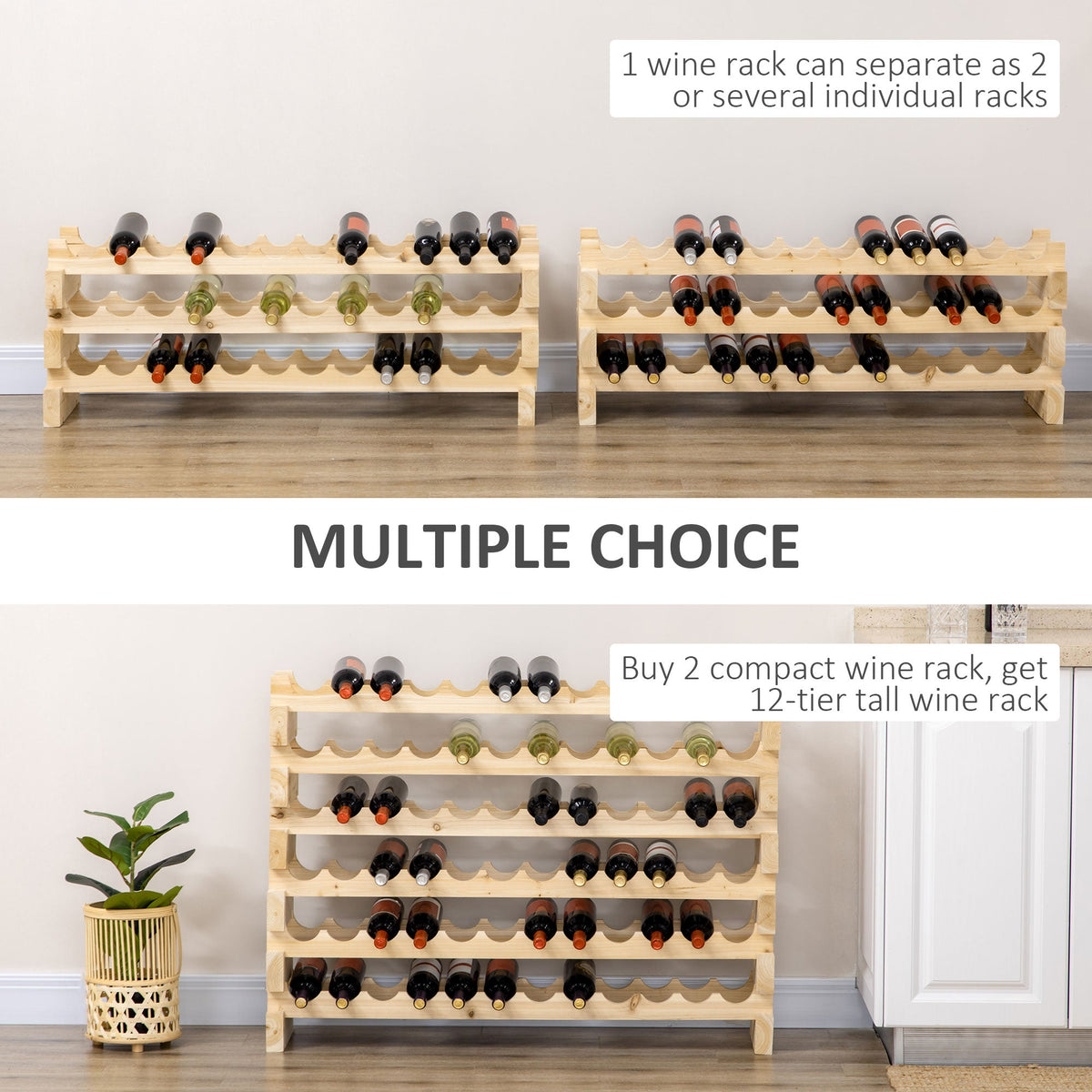 This HOMCOM six-tier bottle rack set is great for all wine lovers, holding your collection in a safe, beautiful place together. Crafted from solid wood, this set is a solid and supportive piece, plus it's a naturally beautiful addition to your home! Six tiers and holds maximum 72 x 750 ml bottles-plenty of room to hold all your favourite tipples together, a must for any wine lover.