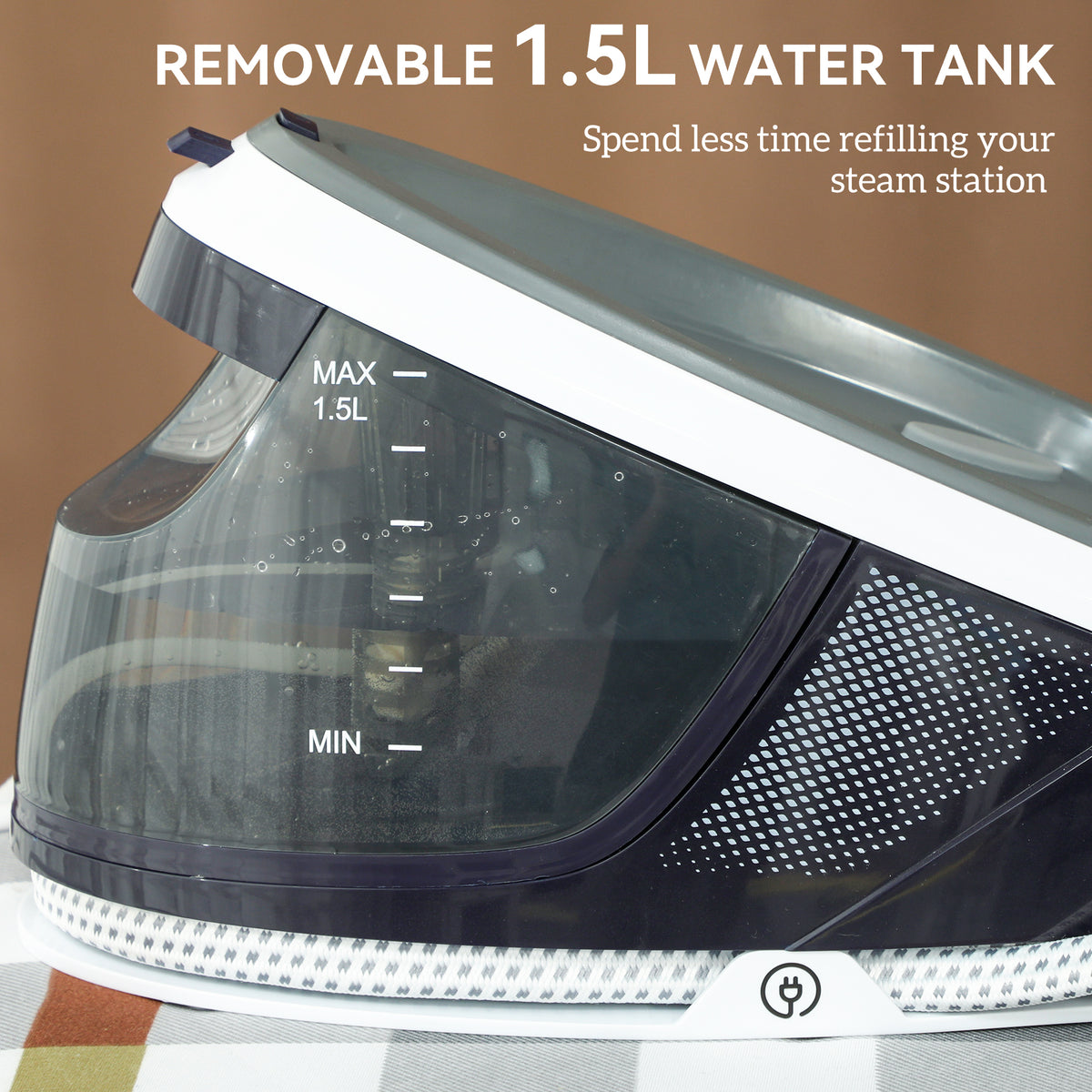 HOMCOM Steam Generator Iron with ECO Mode, Self-Cleaning, Powerful Vertical Steam, Automatic Shut-Off, Ceramic Non-stick Soleplate, Large 1.5L Detachable Water Tank, 8 Bar, 2600W, Blue - Blue