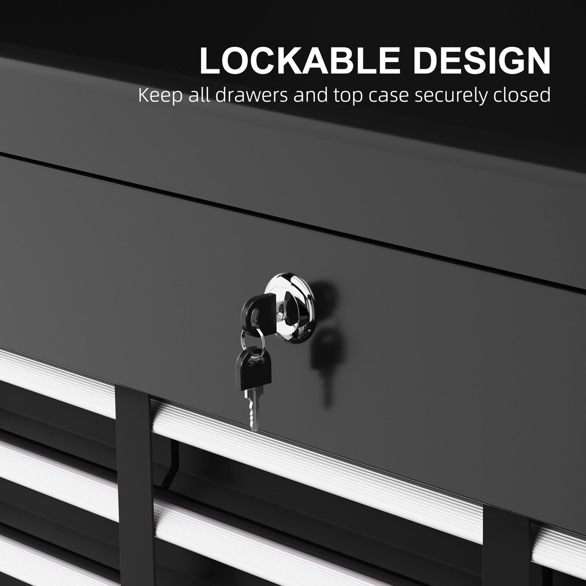 HOMCOM Steel Six Drawer Tool Storage Carry Chest, with Lock and Keys - Black - Black