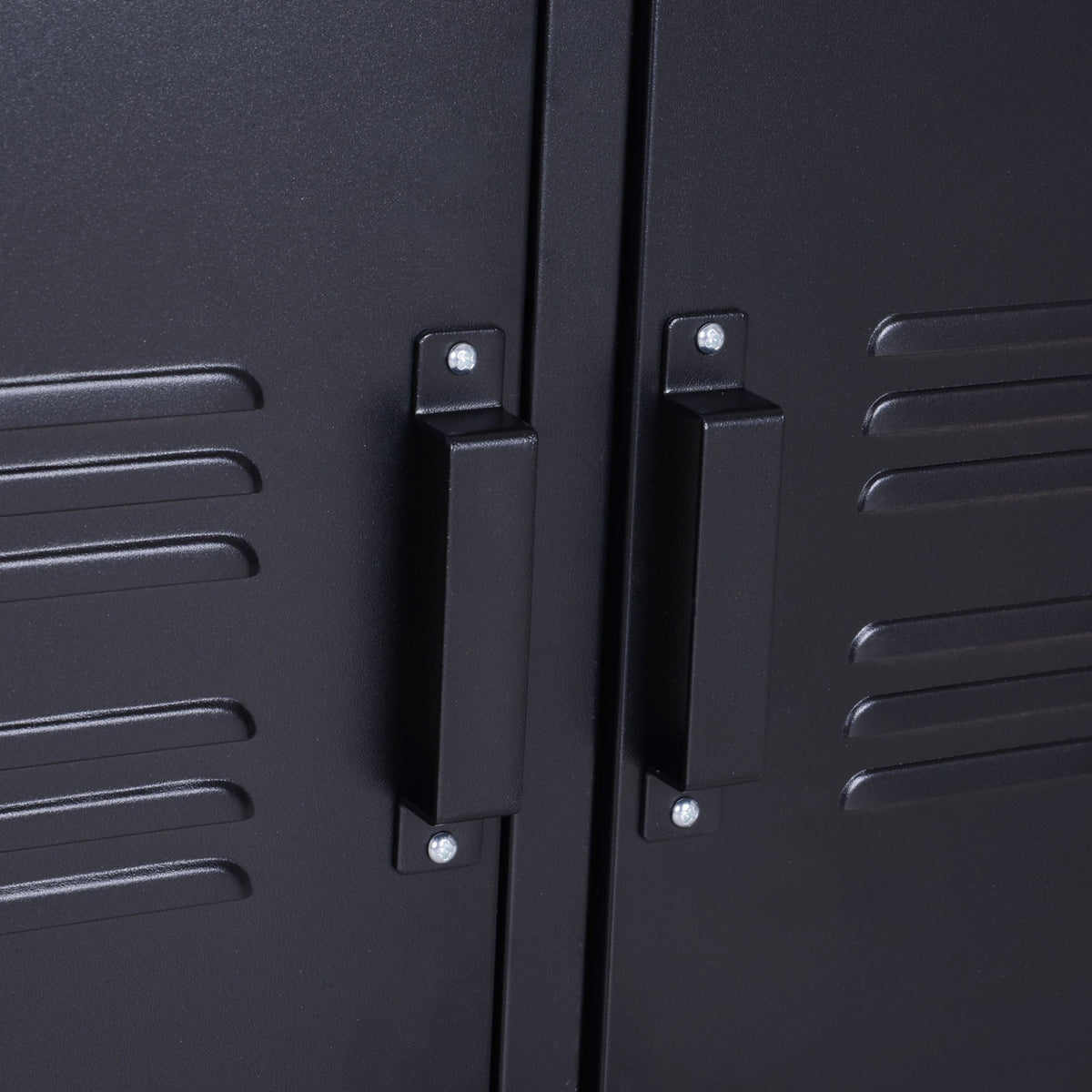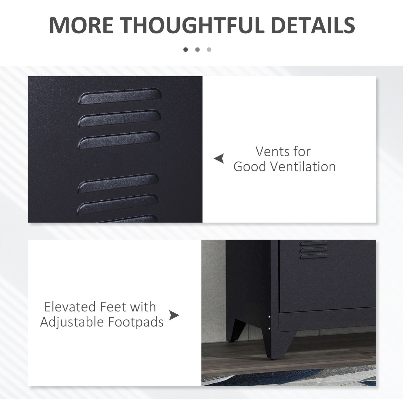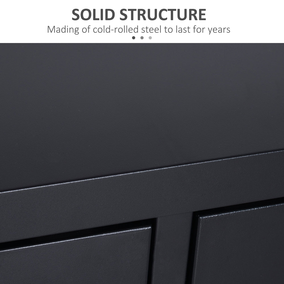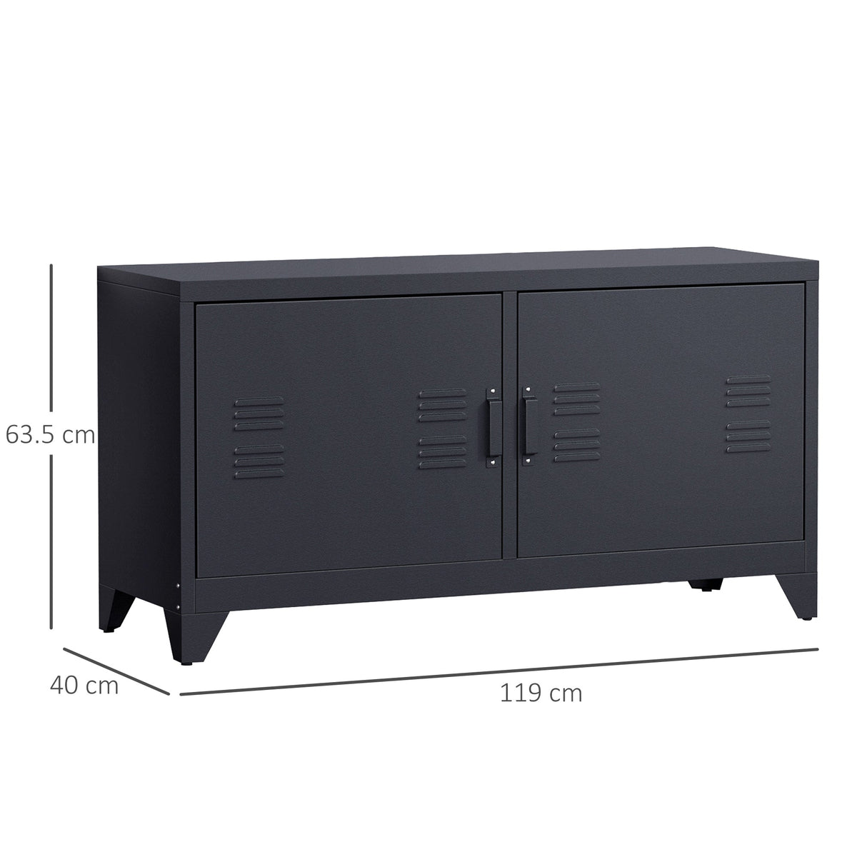 HOMCOM Steel TV Stand Cabinet, Industrial TV Unit for TVs up to 50", TV Table with 2 Doors, Adjustable Shelf and 4 Cable Holes for Living Room, Black - Black