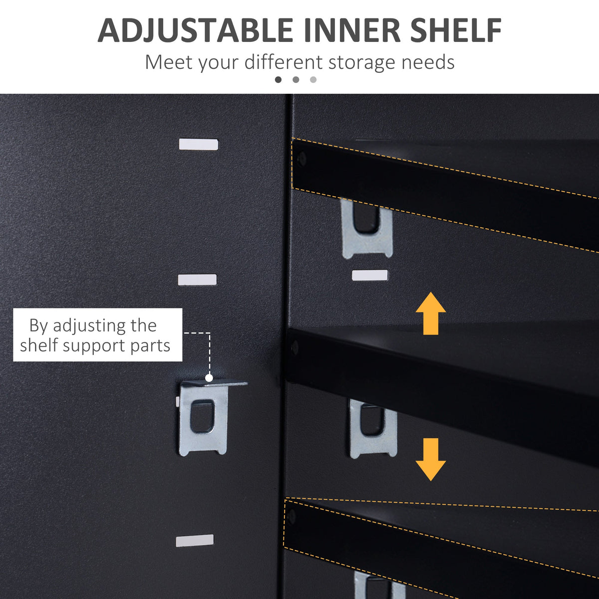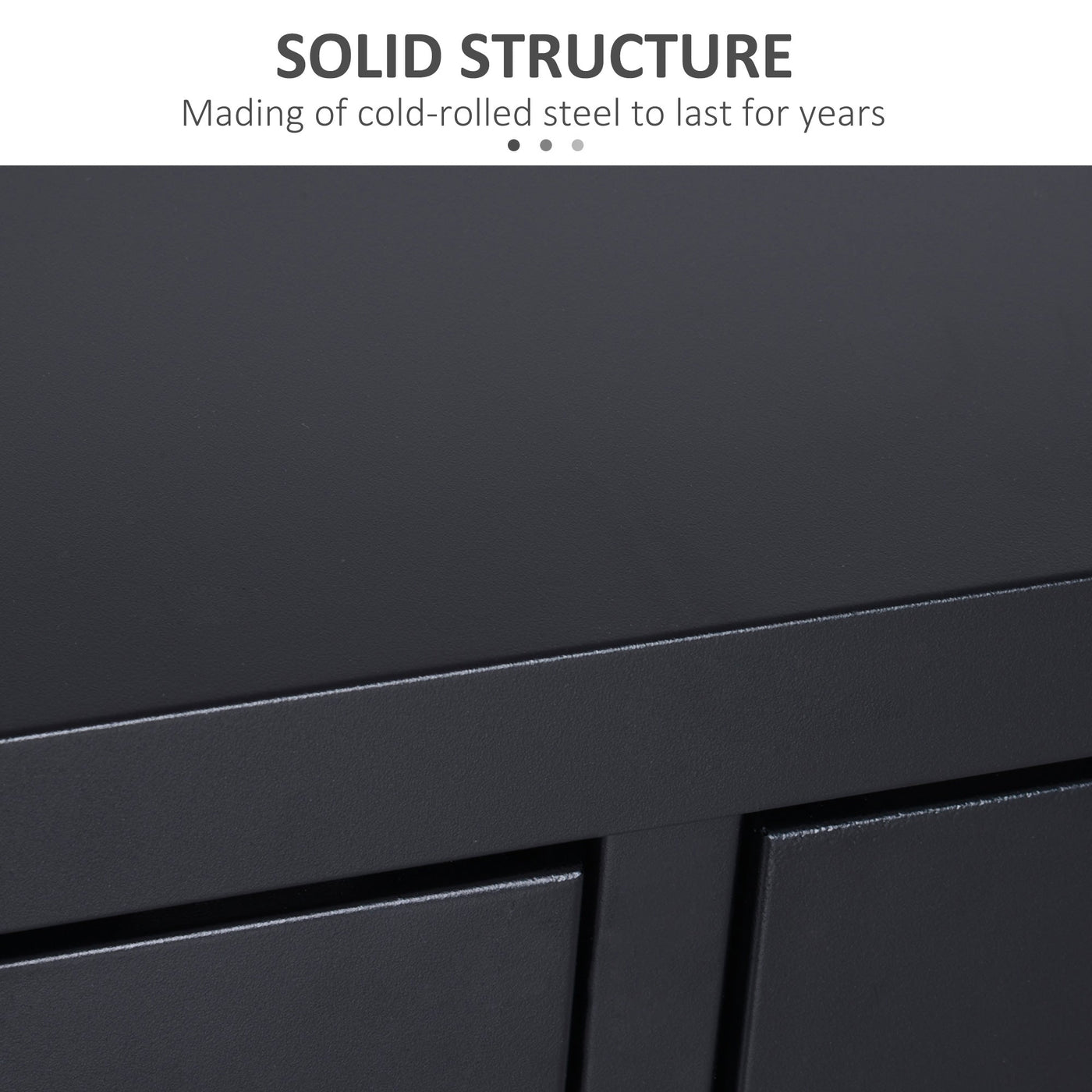 HOMCOM Steel TV Stand Cabinet, Industrial TV Unit for TVs up to 50", TV Table with 2 Doors, Adjustable Shelf and 4 Cable Holes for Living Room, Black