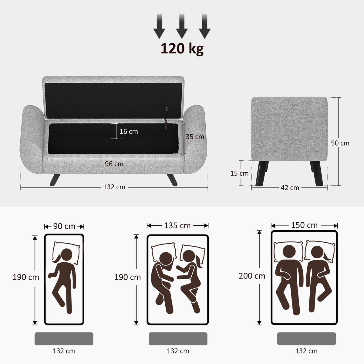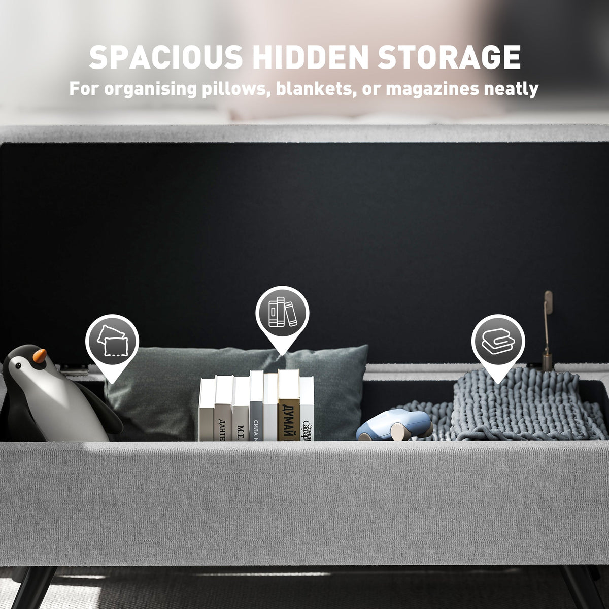 HOMCOM Storage Ottoman with Armrest, Upholstered Linen Storage Bench, Window Seat with Rubberwood Legs, Footstool for Bedroom Living Room, Hallway, Dark Grey