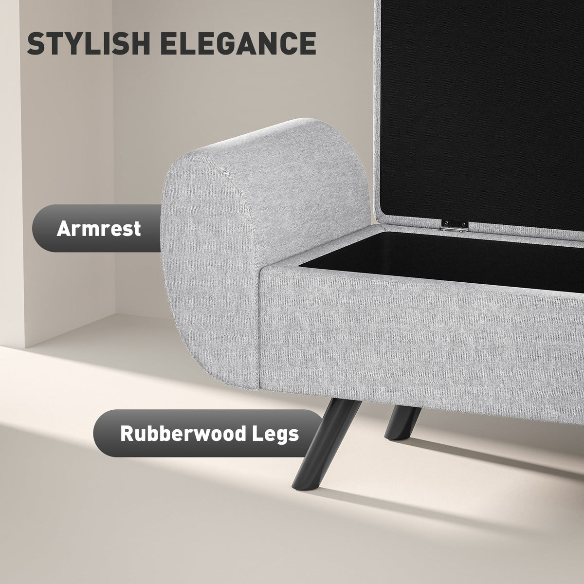 HOMCOM Storage Ottoman with Armrest, Upholstered Linen Storage Bench, Window Seat with Rubberwood Legs, Footstool for Bedroom Living Room, Hallway, Light Grey - Light Grey