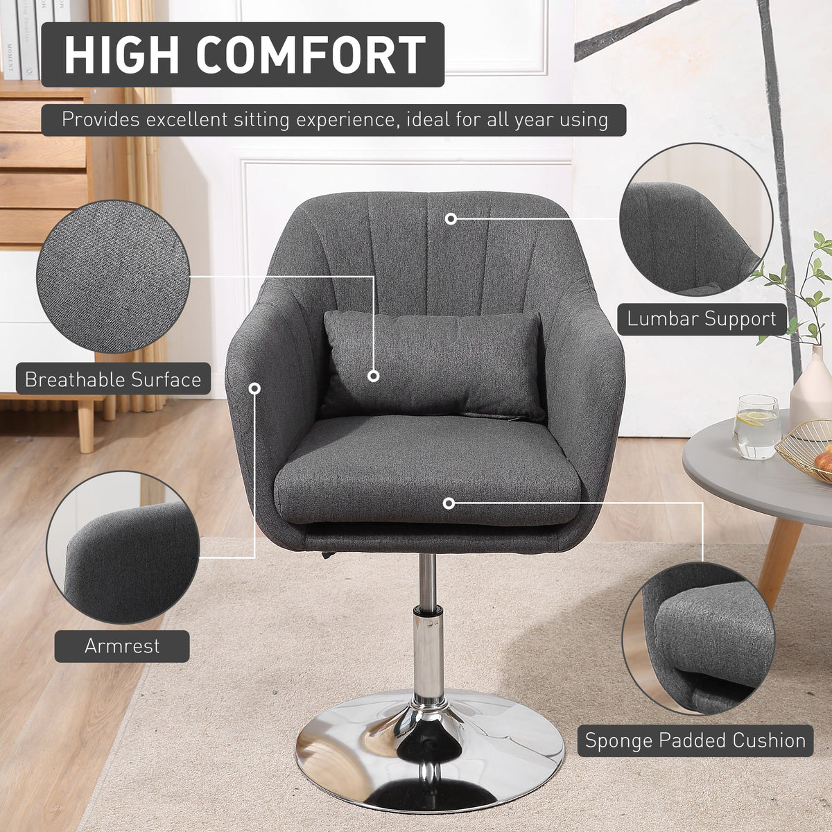 HOMCOM Swivel Linen Fabric Accent Chair for Living Room Contemporary Vanity Armchair with Adjustable Height Thick Cushion Lumbar Support Armrest for Bedroom Office Dark Grey