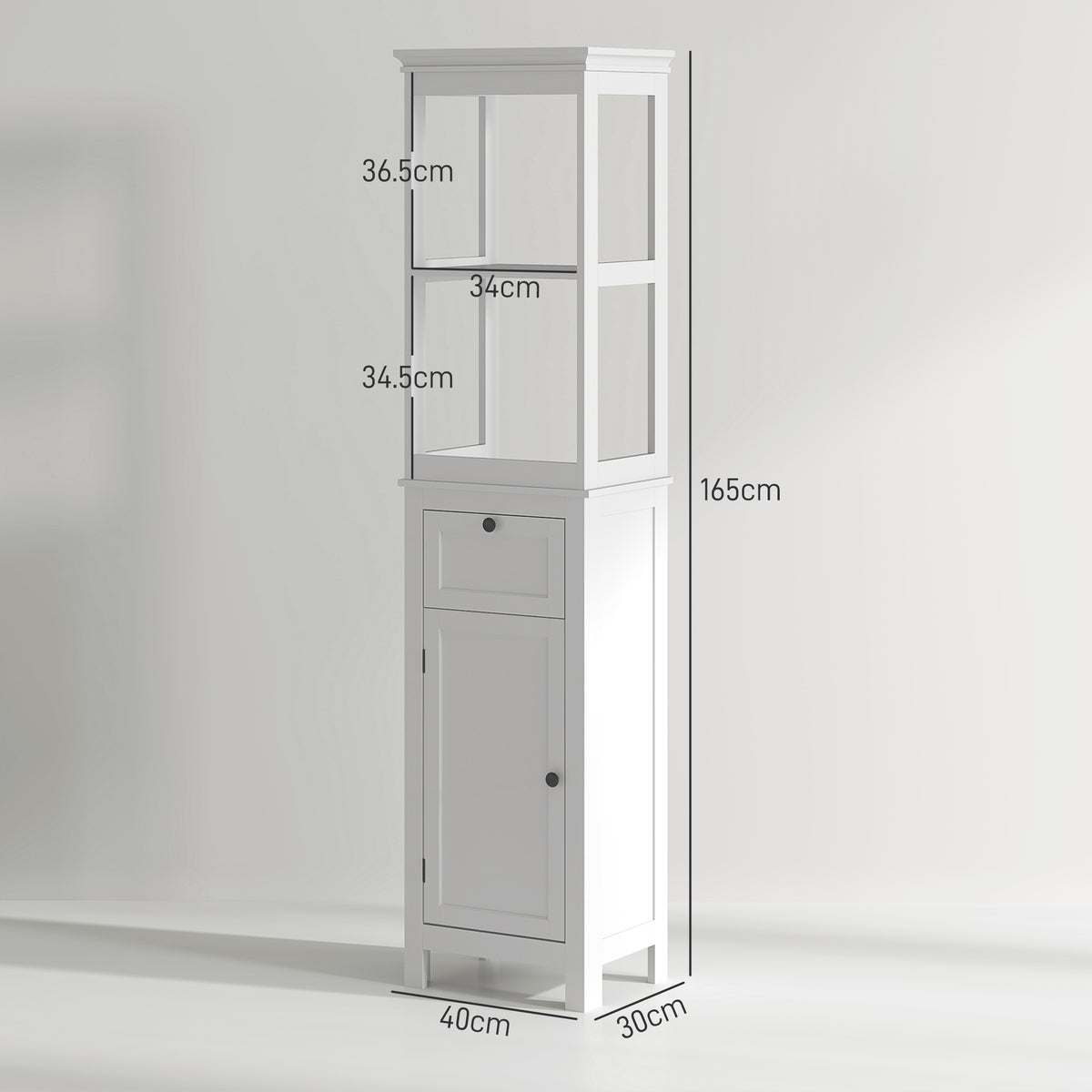HOMCOM Tall Bathroom Cabinet, Slim Bathroom Storage Cabinet with 2 Open Shelves, Soft Close Door and Drawer, Adjustable Shelf, Narrow Cupboard Storage Unit, White - White