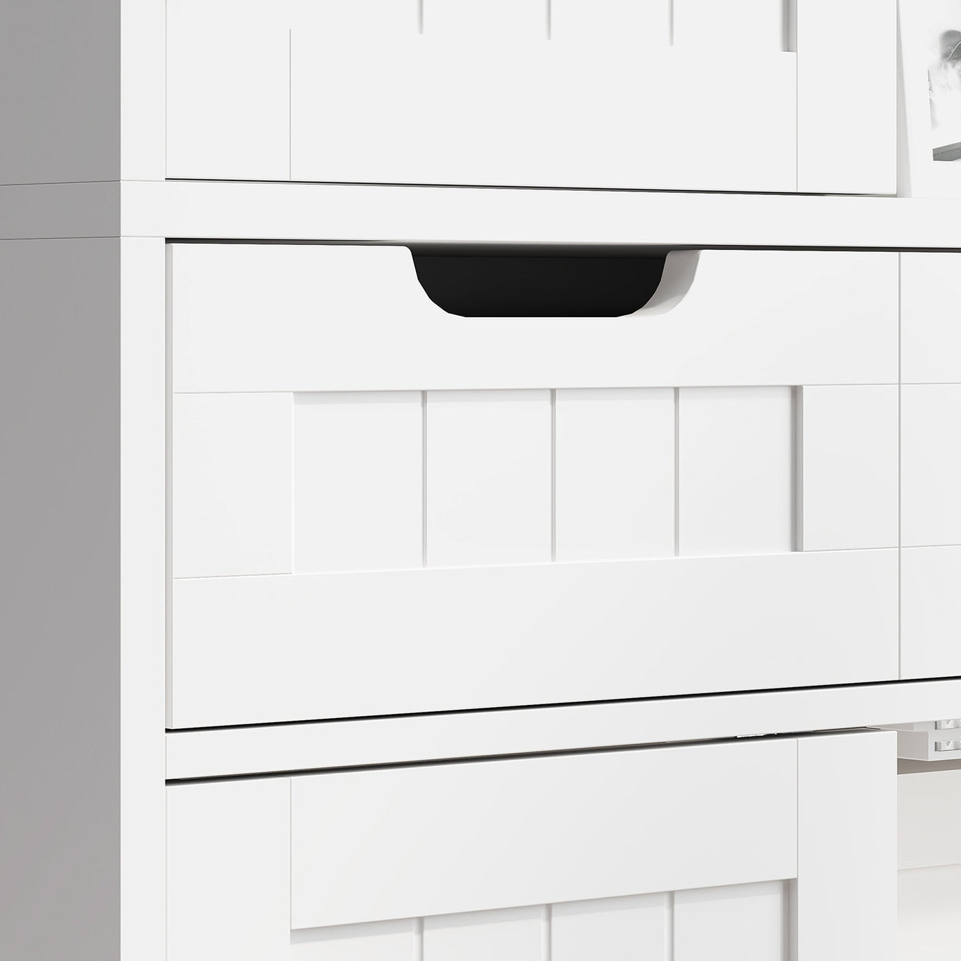 Plenty of storage with this HOMCOM bathroom tall cabinet. It comes with an upper and lower cupboard, plus a middle drawer for lots of storage. Not just for the bathroom, this tall cabinet also works great as a kitchen pantry or sideboard throughout the home.