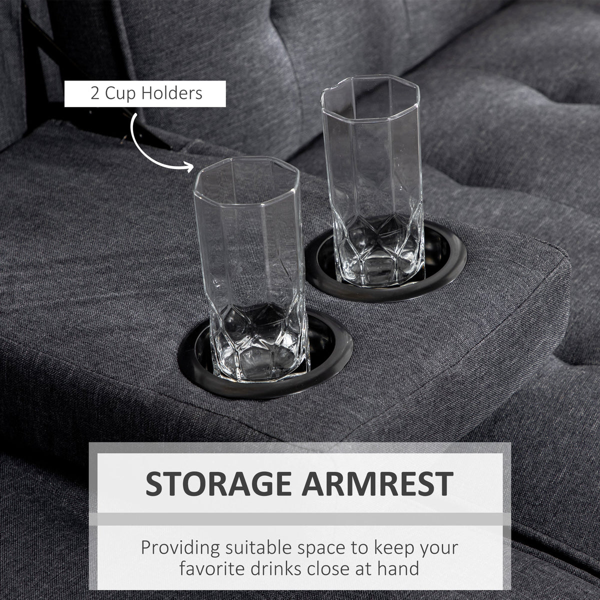 HOMCOM Three-Seater Sofa Bed, with Cupholders - Grey - Grey