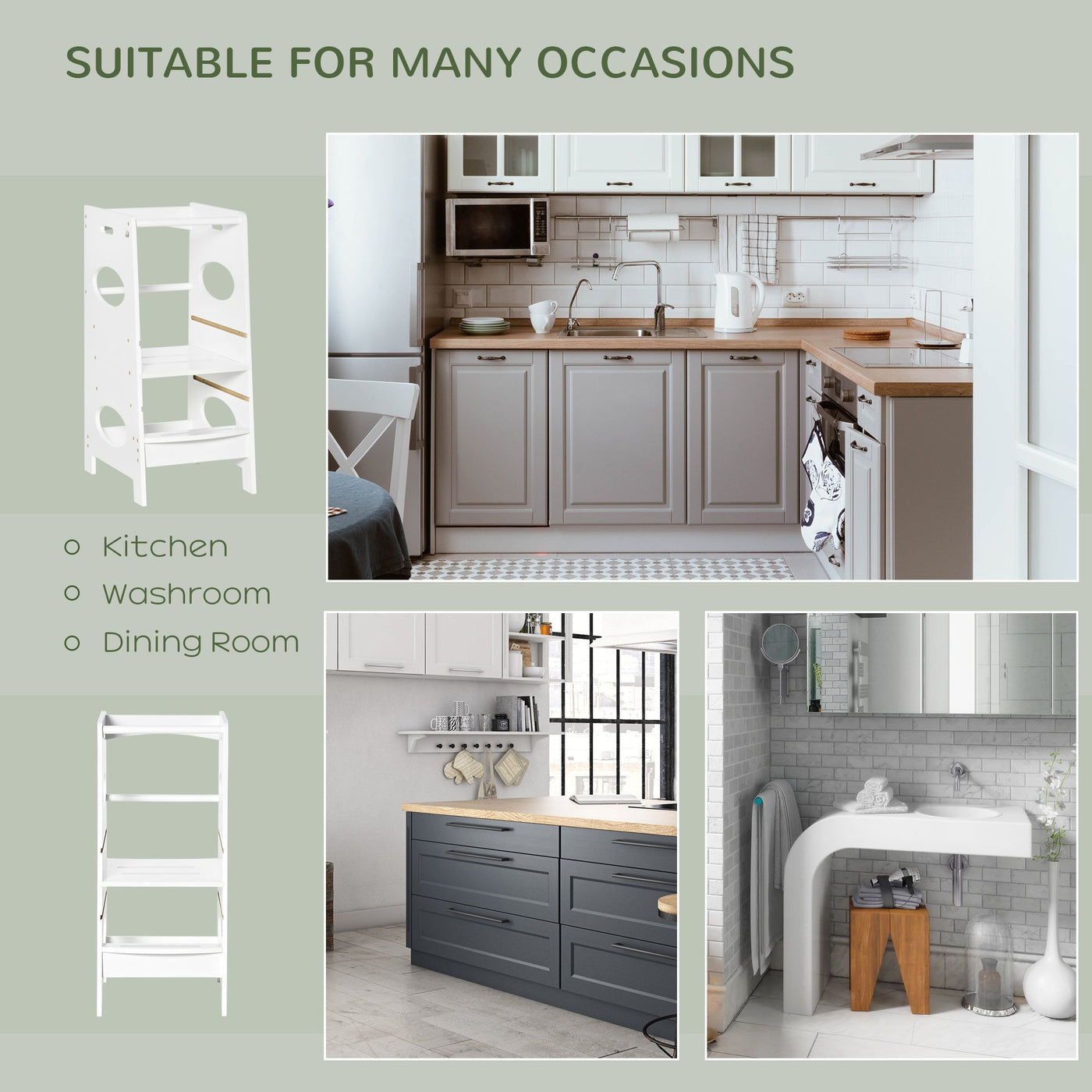 HOMCOM Toddler Step Stool Kids Adjustable Standing Tower with Safety Rail for Kitchen Counter White - White