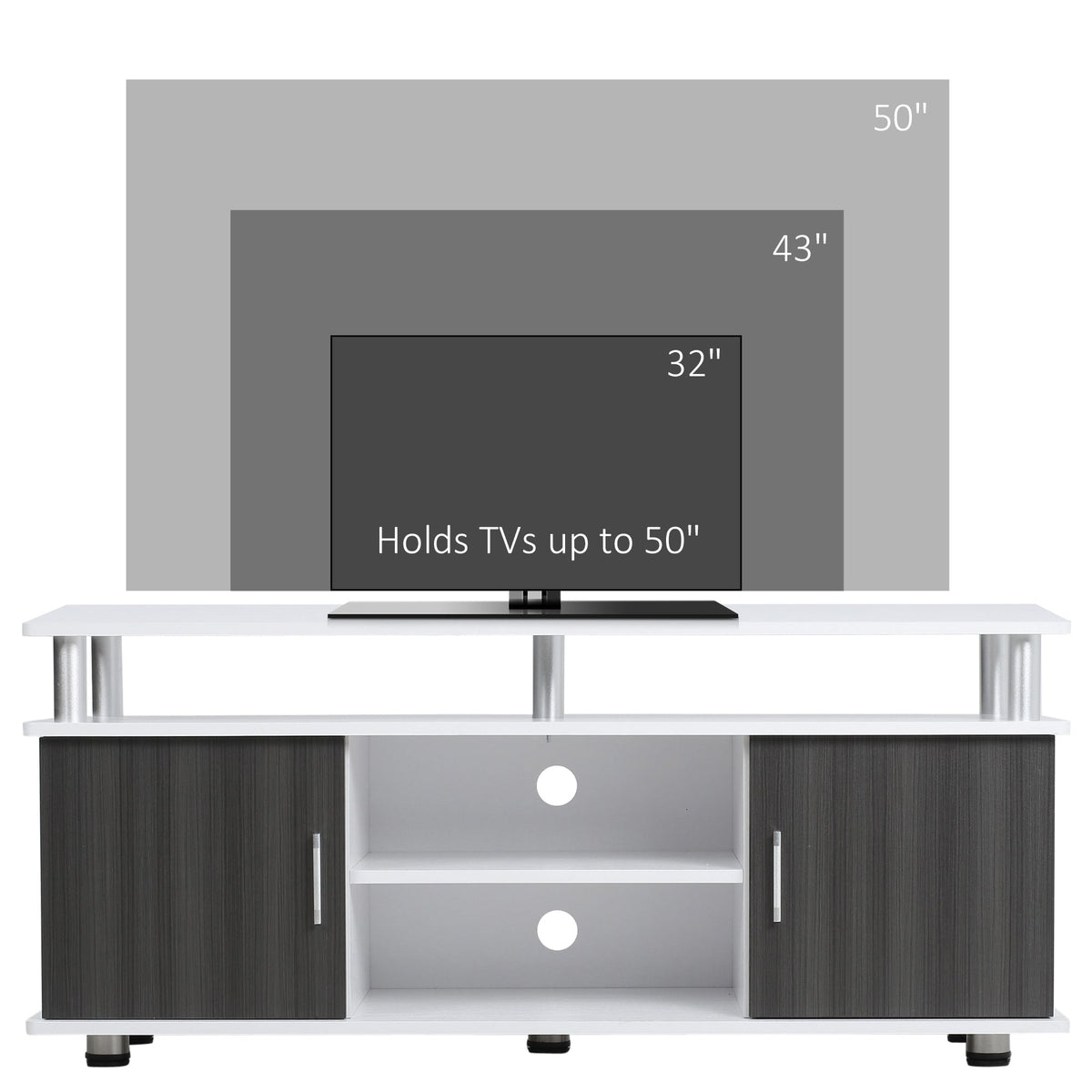 HOMCOM TV Cabinet Unit for TVs up to 50'' with Storage Shelf and Cupboards, Living Room Entertainment Center Media Console, Grey and White - White