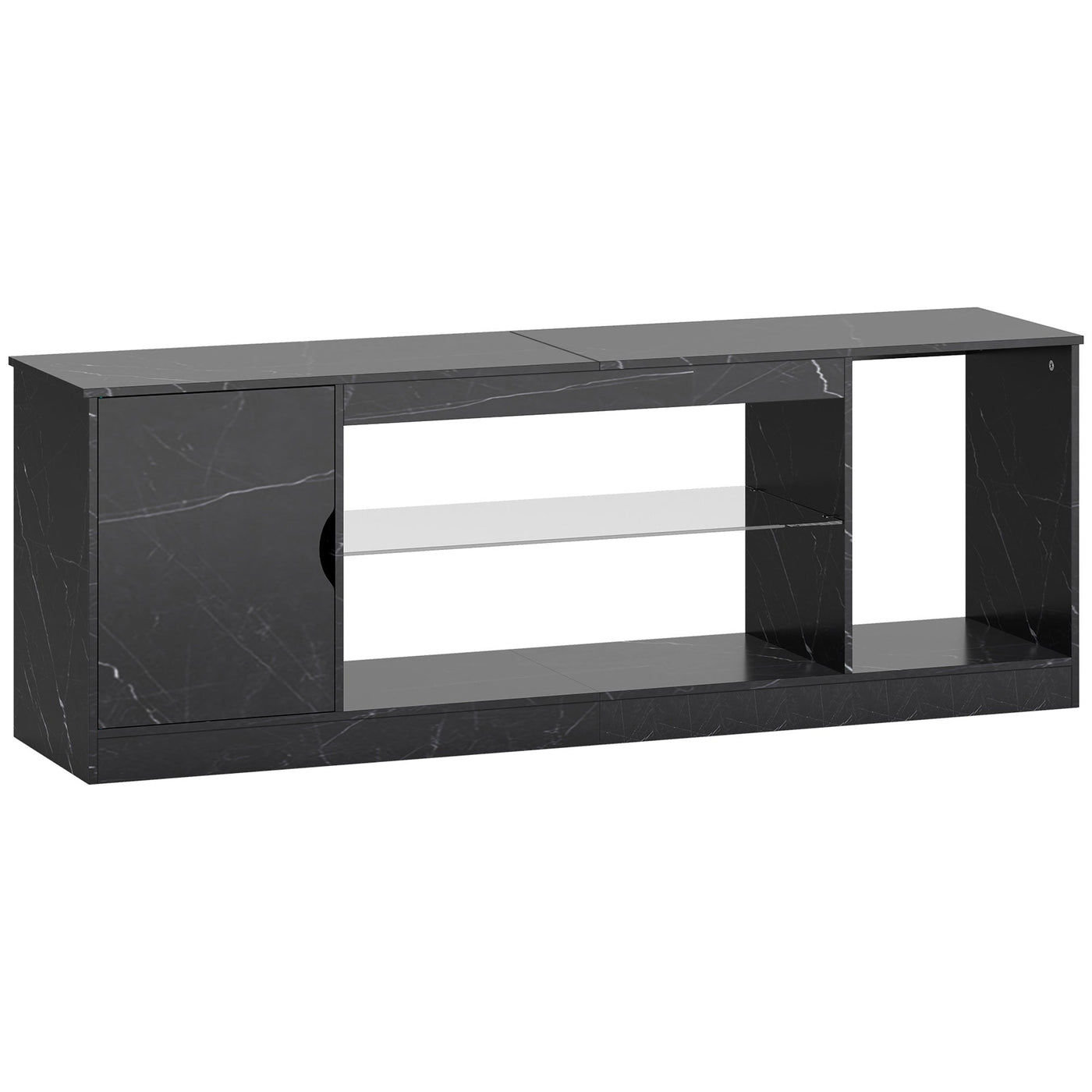 HOMCOM TV Stand Cabinet, Marble Effect TV Unit for up to 55" TVs with Glass Shelf and Storage Cabinet, Entertainment Unit for Living Room, Bedroom, Black - Black