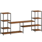 Transform your lounge with the HOMCOM TV console, a stylish hub for all your media essentials. Featuring eight side shelves to display decor and store gadgets and a middle top for up to 55-inch TVs. Its steel frame ensures robust support, while adjustable screw-in feet adapt to uneven floors, ensuring stability and ease of cleaning. Capture the ambiance of a modern farmhouse with this TV console, which perfectly blends industrial black metal with the rich rustic finish.