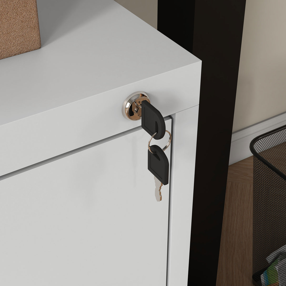 Keep your workspace tidy and organised with this HOMCOM filing cabinet. It features two drawers with adjustable bars for A4 and letter size files - plenty of room for keeping paperwork together. The top centre-locking system ensures locks all drawers simultaneously for security. Enjoy a clutter-free space with a modern touch.