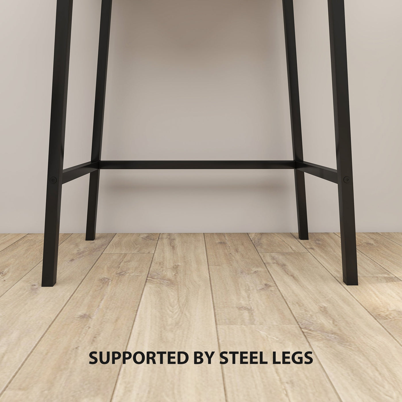 Elevate your daily routine with the HOMCOM dressing table featuring an HD flip-up mirror that transforms into a compact computer desk. Beneath the mirror, discover 16 hidden compartments for organising makeup and accessories, ensuring clutter-free mornings. Industrial makeup table, with a natural wood effect and sleek black legs, seamlessly blends into your home, enhancing your space with style and functionality.