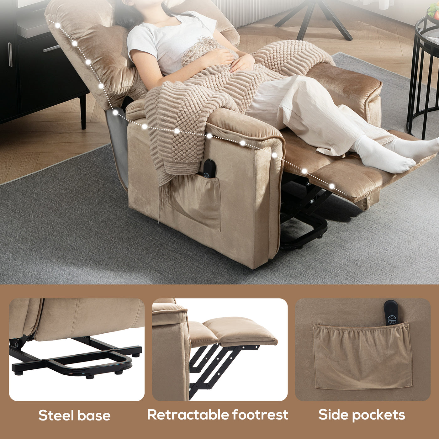 Life made easier with this HOMCOM electric recliner armchair. With the touch of a button, you can go from seated to standing: great for those who require that little extra help. Thickly padded, with pocket springs to retain the bounce and oversized, this electric recliner chair is super comfortable. Set the 150° reclining back and footrest to a position of your choice easily, thanks to the included remote.