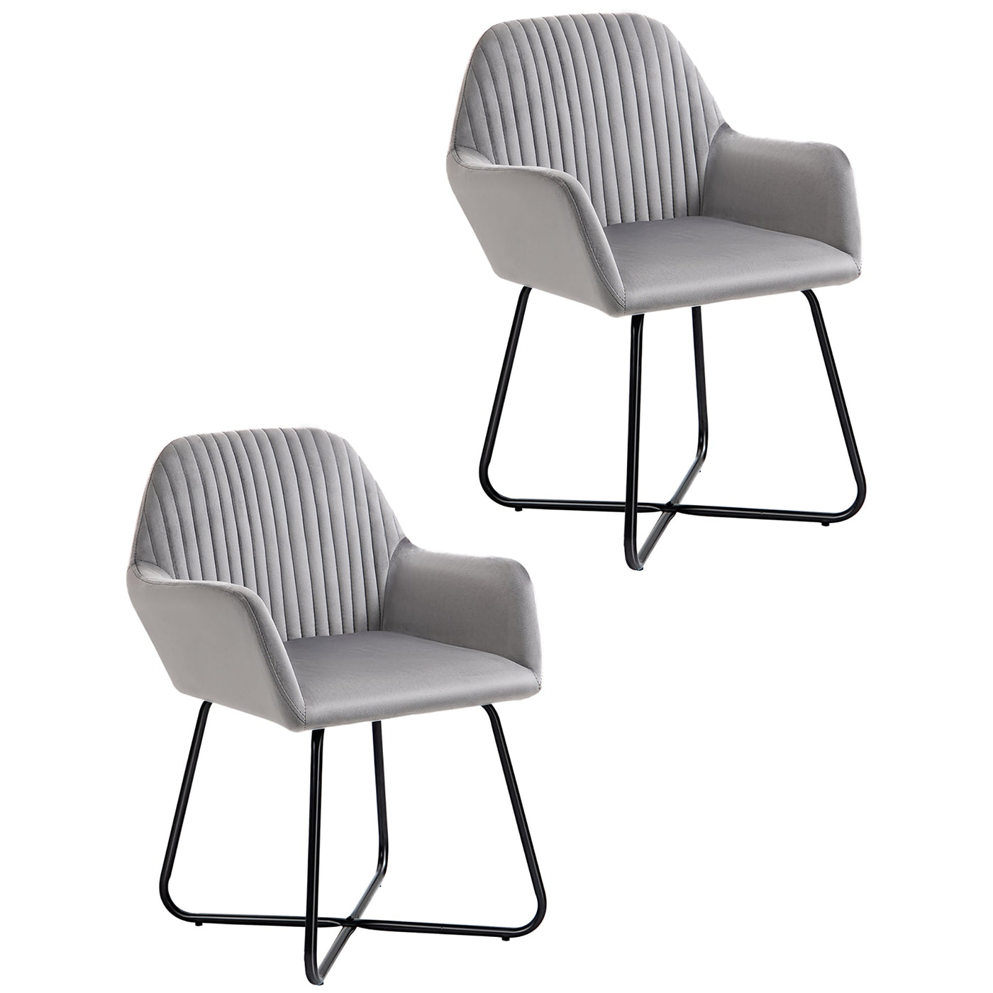 HOMCOM Velvet-Feel Plisse Back Accent Chair - Grey - Grey