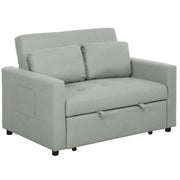 A small place to relax and rest - day and night. This HOMCOM sofa bed serves as a two-seater sofa for daytime use and a bed for nighttime use. Filled with foam, this is a soft and comfortable piece to sink into, with the back and arms giving plenty of support. Two pillows included for extra comfort. The back angle is adjustable between 105°, 130° and 180°. Wrapped in soft velvet-feel upholstery, finished with two handy side pockets.