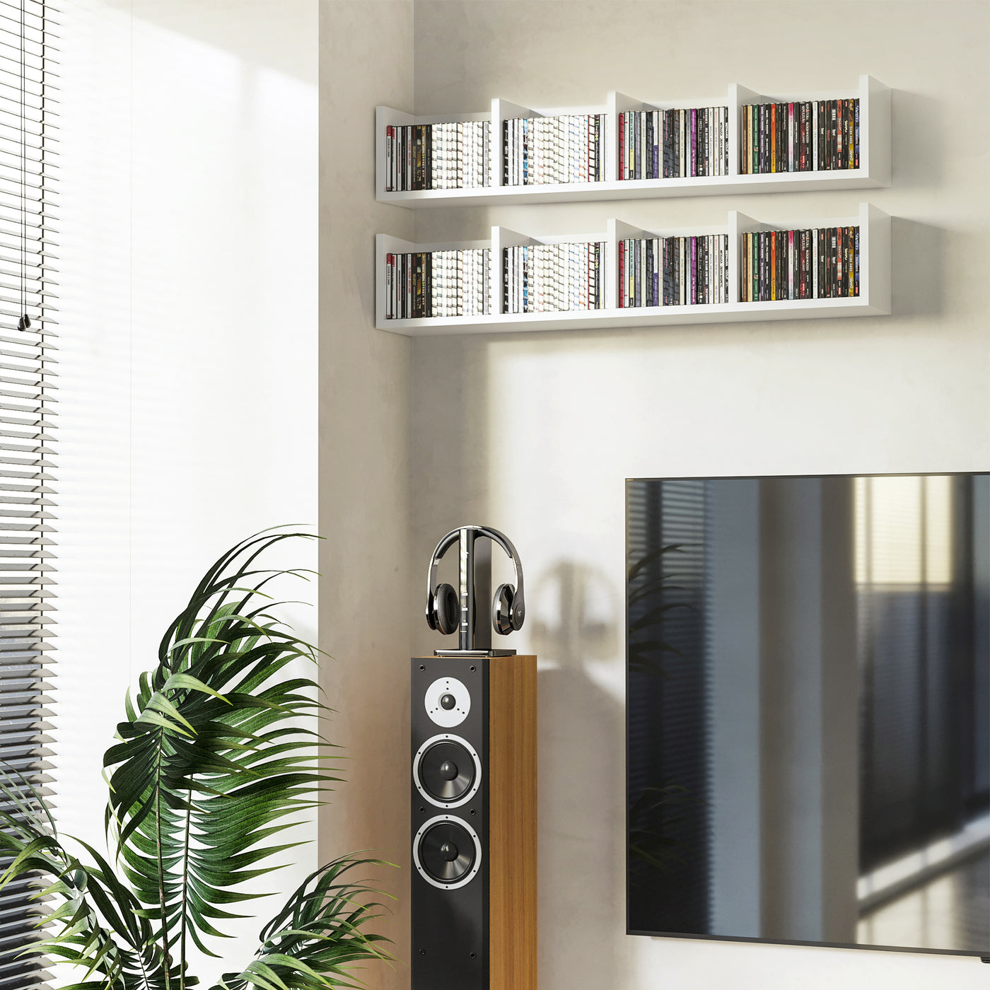 HOMCOM Wall Mount 84 CD / 56 DVD/Blu-ray/ Media Storage Rack 4 Cubes, Wooden Shelf Organiser Unit Bookcase Display, Set of 2, White - White