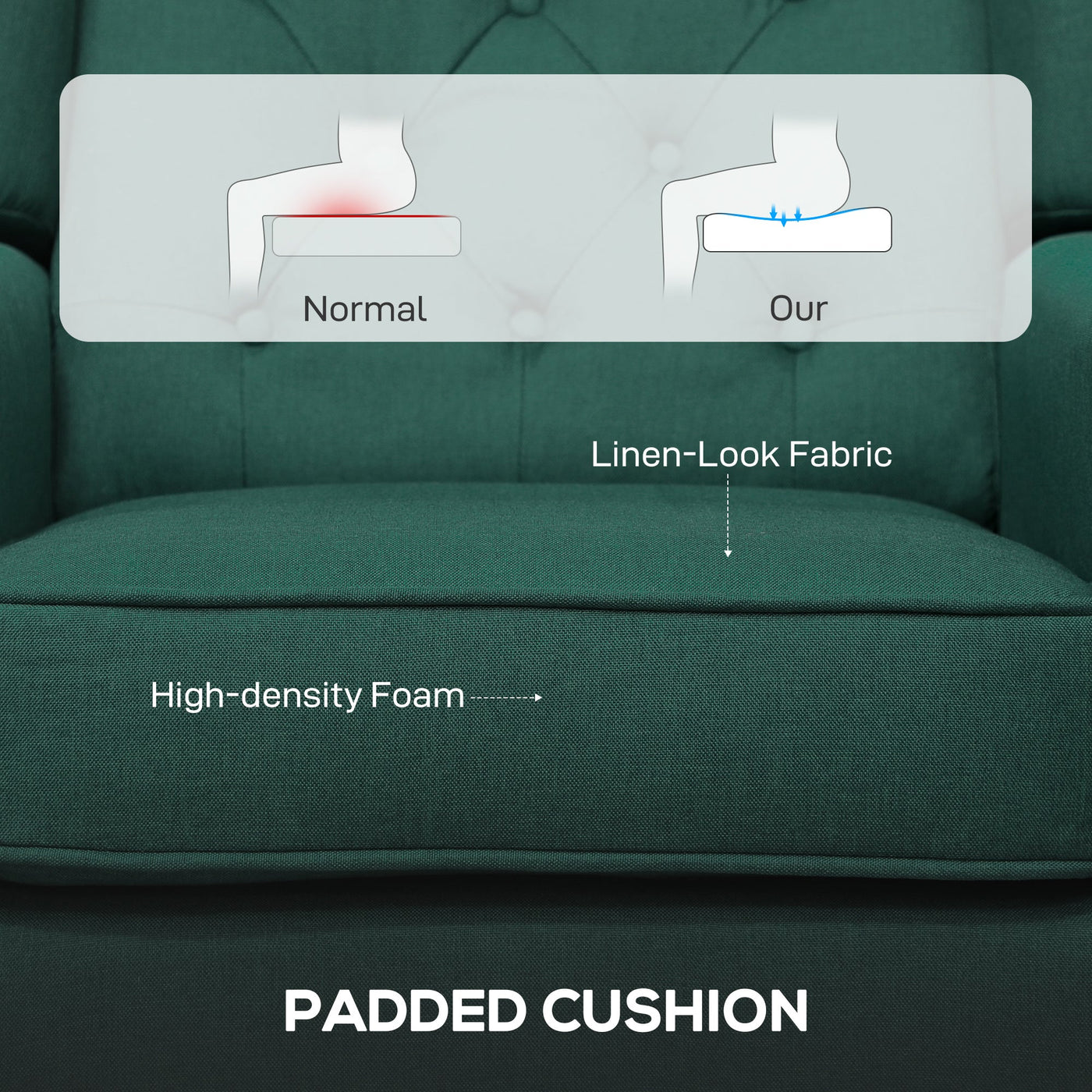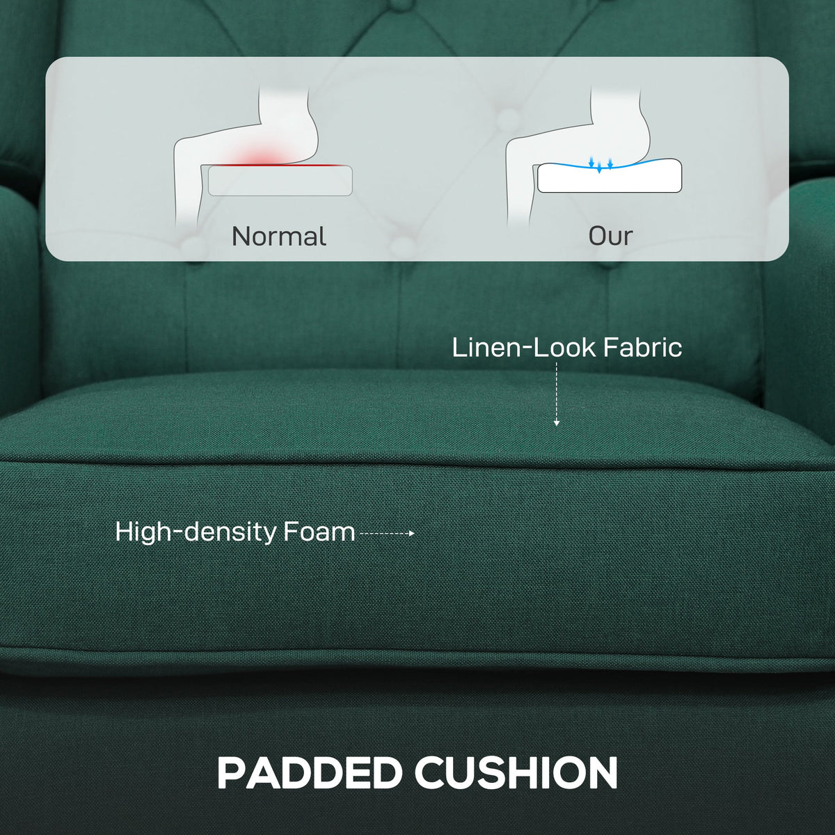 HOMCOM Wingback Accent Chair, Retro Upholstered Button Tufted Occasional Chair for Living Room and Bedroom, Dark Green - Green
