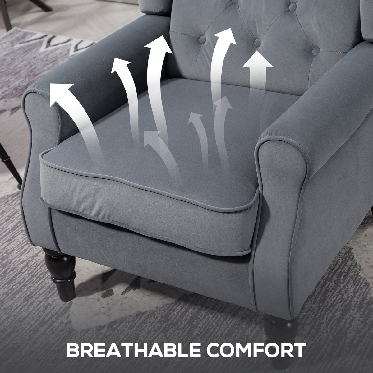 HOMCOM Wingback Accent Chair, Retro Upholstered Button Tufted Occasional Chair for Living Room and Bedroom, Grey