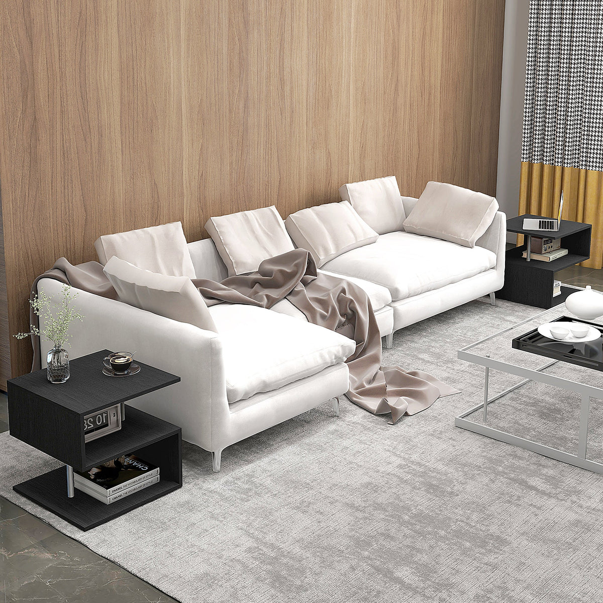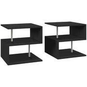 HOMCOM Wooden S Shape Cube Coffee Table 2 Tier Storage Shelves Organiser Office Bookcase Living Room End Desk Stand Display Set of 2 (Black) - Black