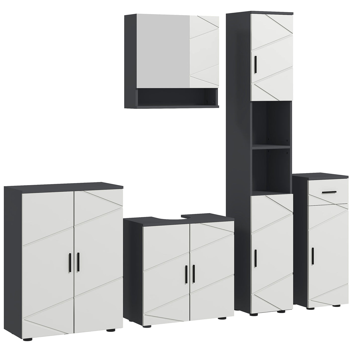 - 5-piece bathroom furniture set creates a coordinated bathroom look