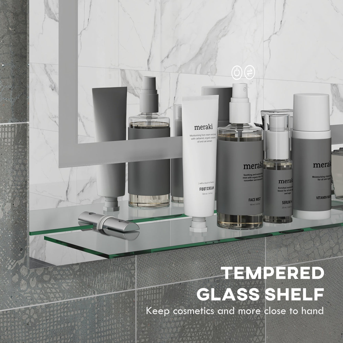 kleankin Large Vanity Mirror with Lights and Shelf, Illuminated bathroom Mirror with 3 Colour Brightness, Smart Touch, Anti-Fog - Clear