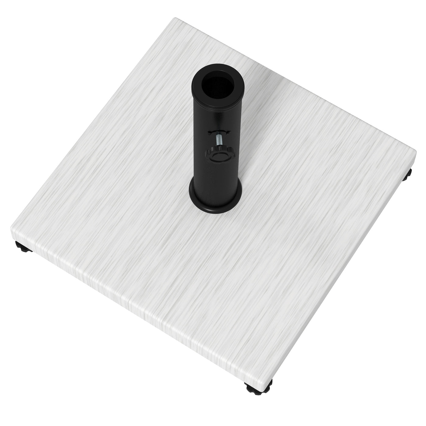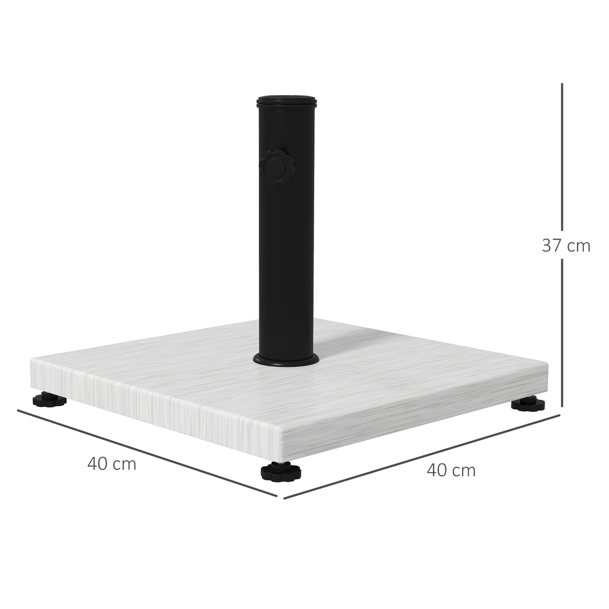 Outsunny 12kg Garden Parasol Base with Adjustable Foot Pad and Knob, Concrete Umbrella Stand with Wood Effect, Rectangular Parasol Holder for 38mm and 48mm Poles, White - White