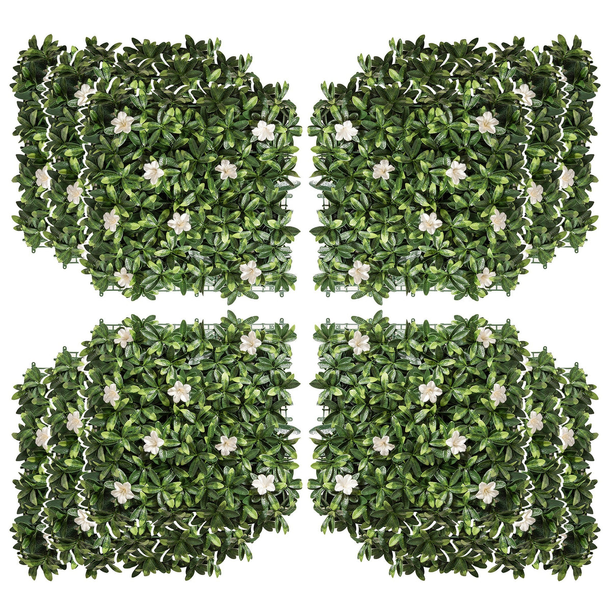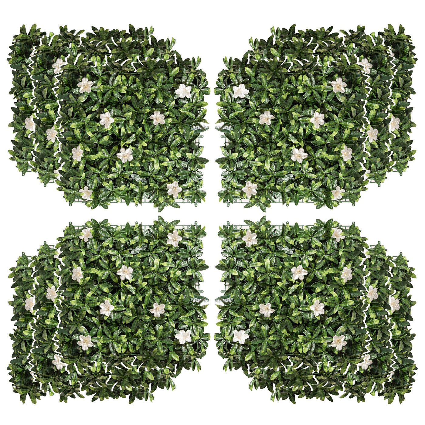 Outsunny 12PCS Artificial Boxwood Wall Panels 50cm x 50cm Rhododendron Privacy Fence Screen Faux Hedge Greenery Backdrop for Home Garden Backyard Balcony