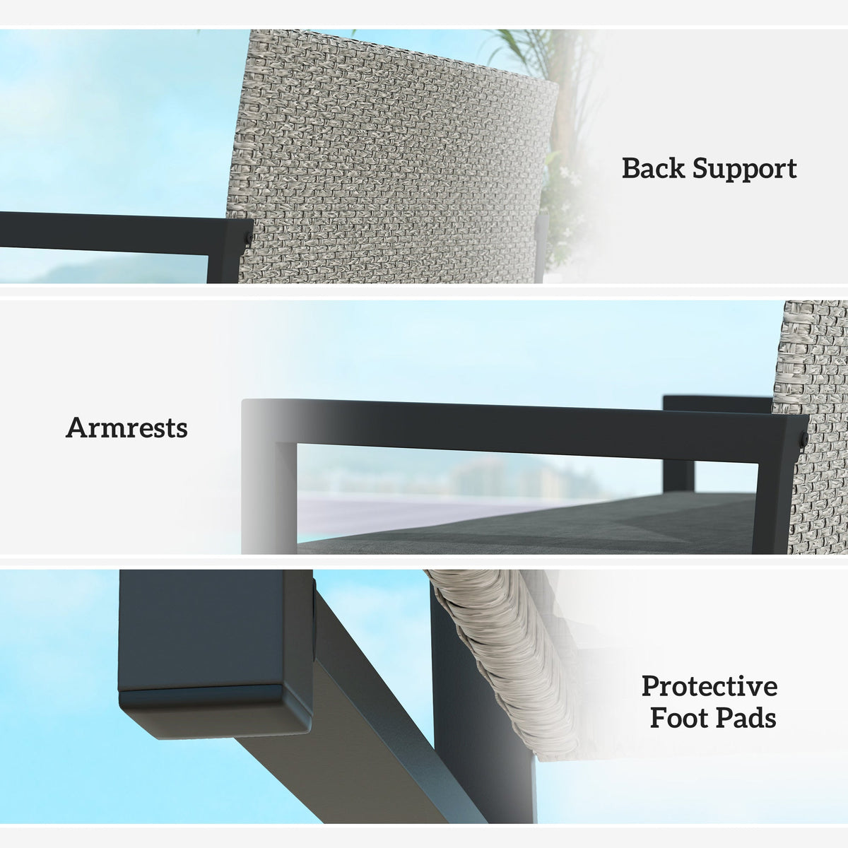 - Powder coated steel frame for a strong core, wrapped in tough and protective plastic rattan
