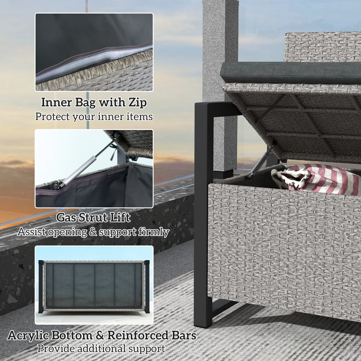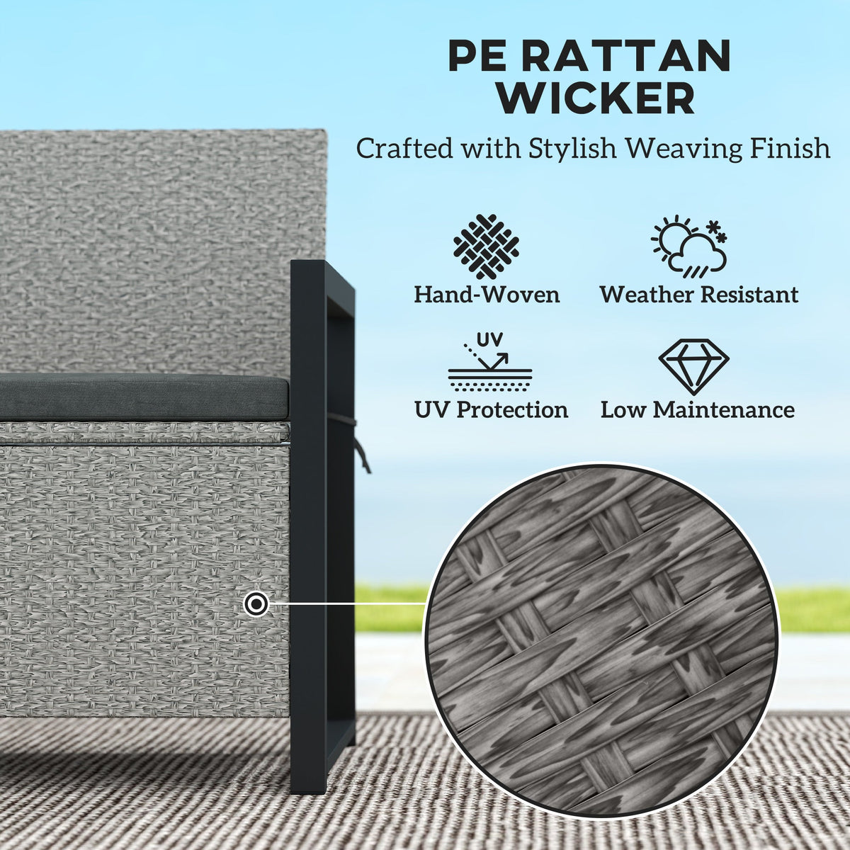 This Outsunny outdoor bench with storage offers a place to relax and keep all those small furnishings in a safe, rememberable place. The powder coated steel frame means a strong core, wrapped in stylish and protective plastic wicker. It has a 151.5L storage box, with the zipped inner bag offering protection. Complete with a padded seat cushion to keep you comfortable.