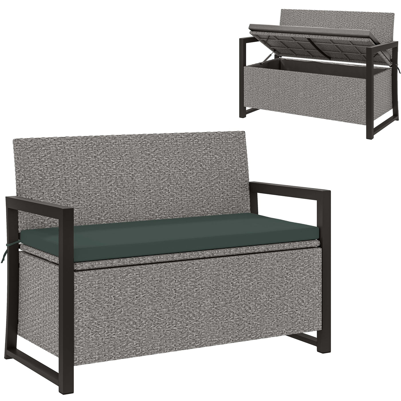 - Duo design: an outdoor bench, with a 151.5 L garden storage box