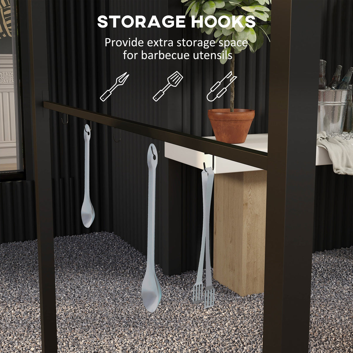 Outsunny 2.2 x 1.5 m BBQ Grill Gazebo Tent, Garden Grill with Metal Frame, Curved Canopy and 10 Hooks, Outdoor Sun Shade, Grey