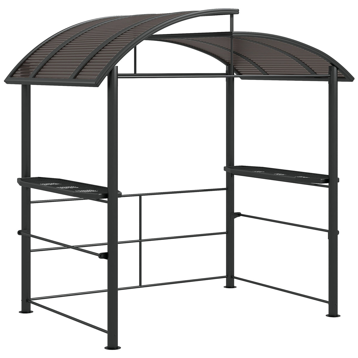Outsunny 2.4 x 1.5m Outdoor Grill Gazebo with Side Shelves, PC Board Roof, Dark Grey - Dark Grey