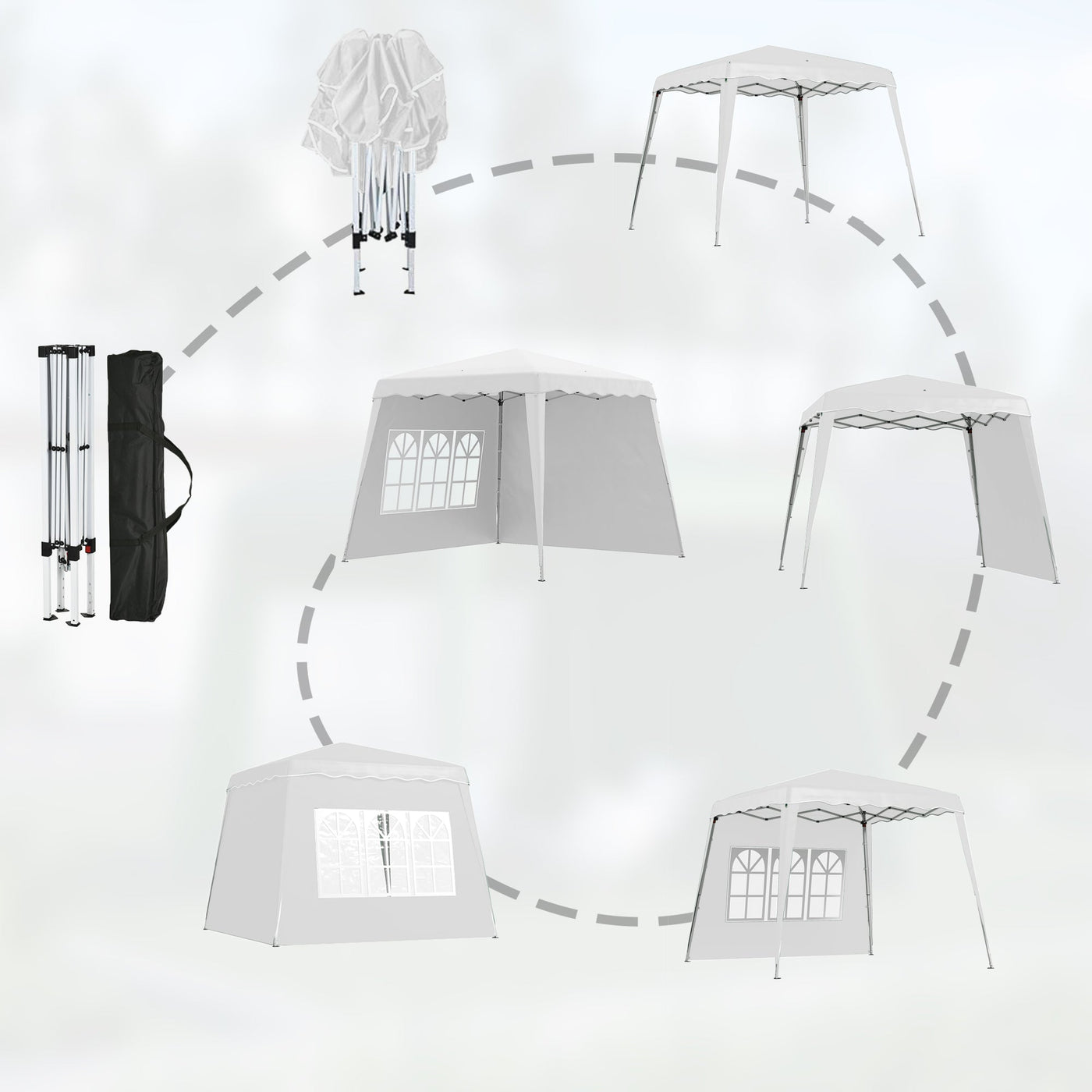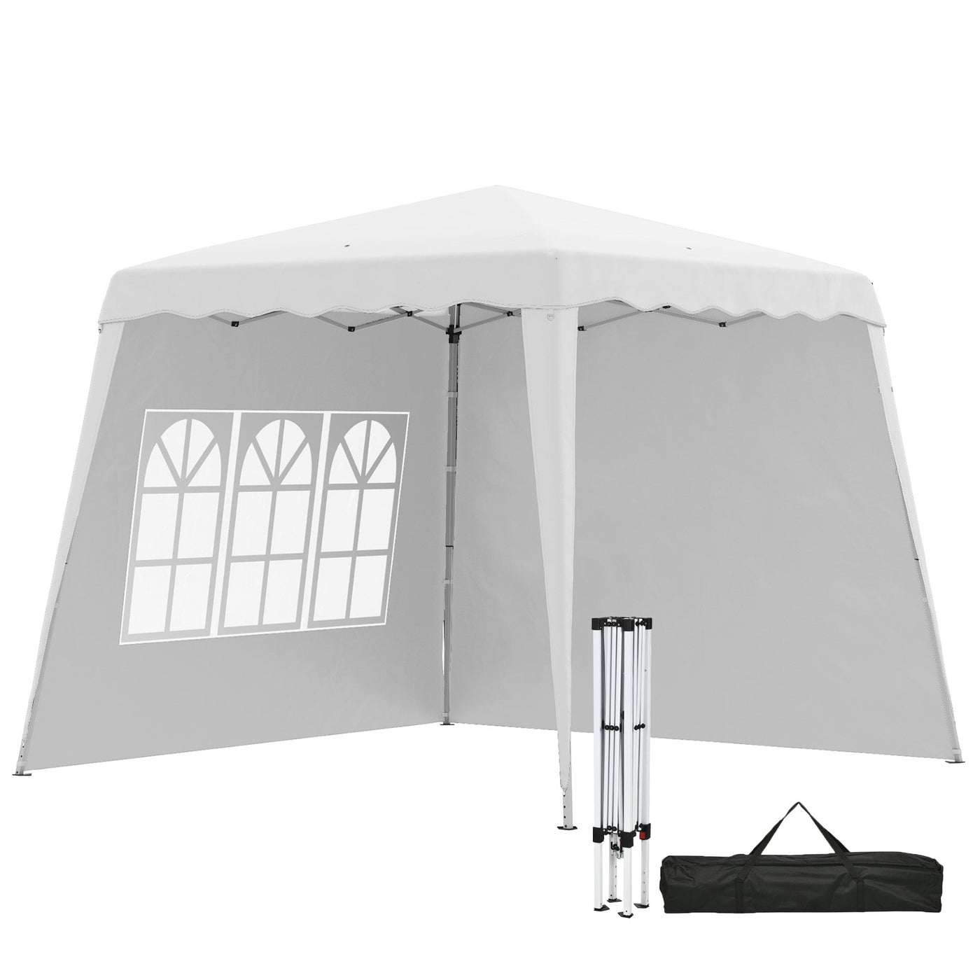 A shelter for your outdoor gatherings, in a quick moment? This Outsunny pop up gazebo with sides makes it possible. Simply open up the strong, powder coated steel frame, lock it into place and pull the shelter cover over. The frame height is adjustable to 242cm, 246cm or 250cm, so you can choose a height most suitable for you. Two removable walls mean you can create a semi-open or fully open atmosphere. Complete with guy ropes and ground stakes for stability, with carry bag also included.