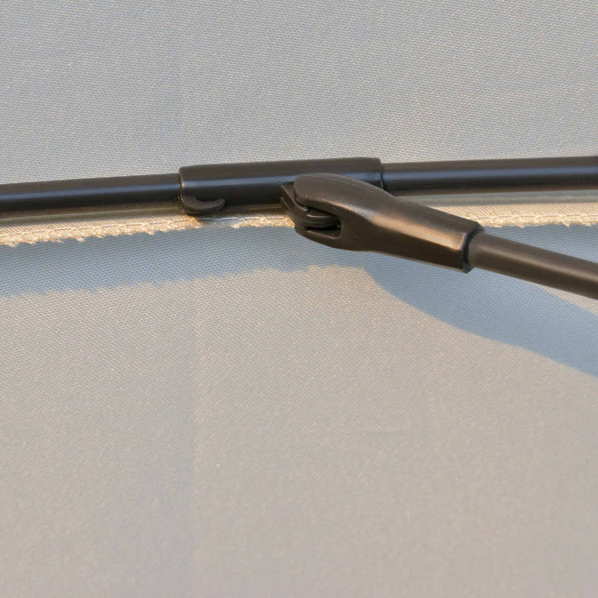 Keep yourself protected with the large garden umbrella from Outsunny. With a large polyester canopy, the balcony parasol offers plenty of shade underneath. The outdoor parasol is connected to a tough metal frame with 18 fibreglass ribs. Sunshades for garden with crank handle and tilt, which opens and closes the canopy smoothly and easily. Please note, that a base is not included.