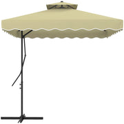 Outsunny 2.5m Square Double Top Garden Parasol Cantilever Umbrella with Ruffles, Beige