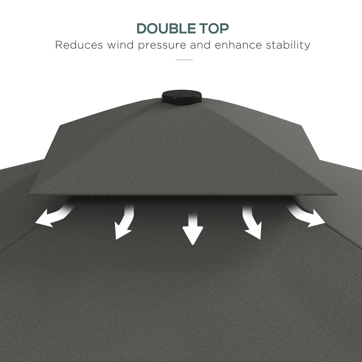 Outsunny 2.5m Square Double Top Garden Parasol Cantilever Umbrella with Ruffles, Dark Grey