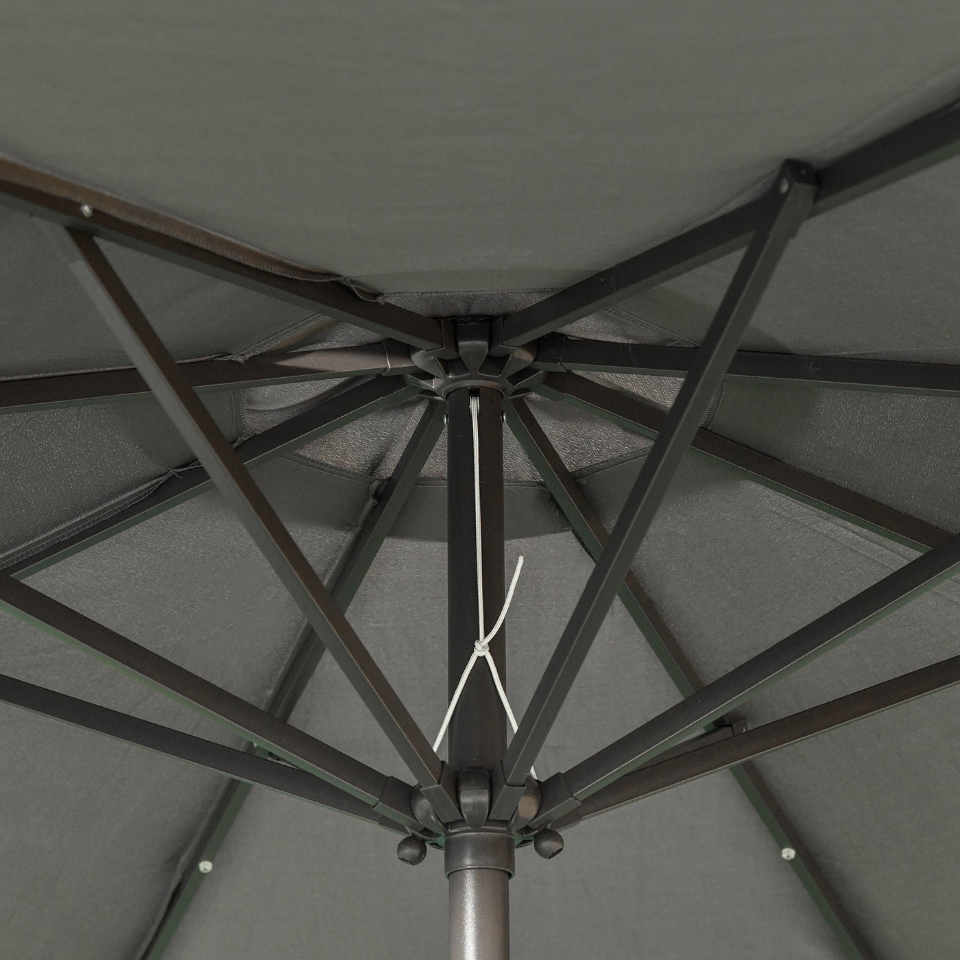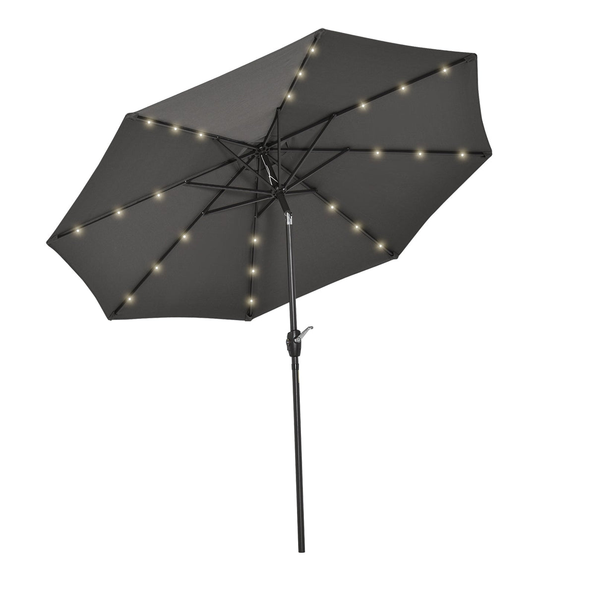 Outsunny 2.7m Garden 24 LED Light Parasol Solar Outdoor Tilt Sun Umbrella Patio Club Party Event Manual Sun Shade w/ Hand Crank and 8 Ribs, Grey - Grey