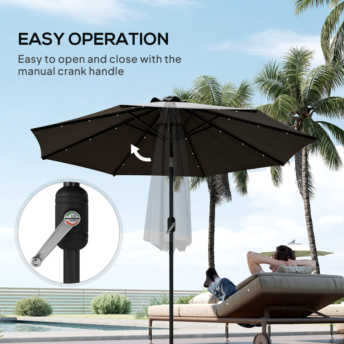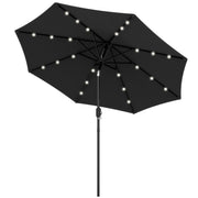 Outsunny 2.7m Garden Parasol Solar Outdoor Tilt Sun Umbrella Patio Sun Shade w/ 24 LED Light, Hand Crank and 8 Ribs, Black - Black