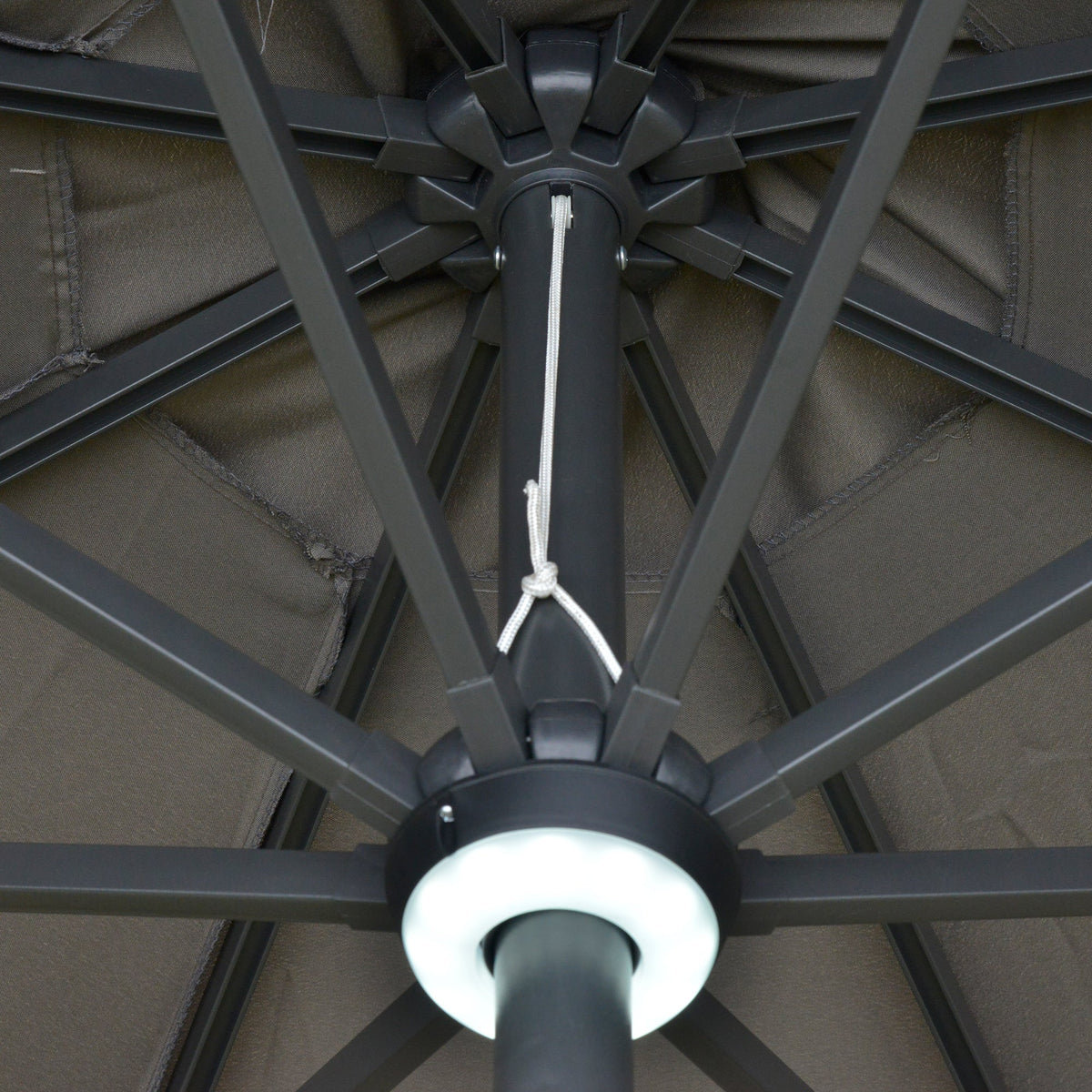 Outsunny 2.7m Garden Parasol Sun Umbrella w/ LED Solar Light Angled Canopy Grey - Grey