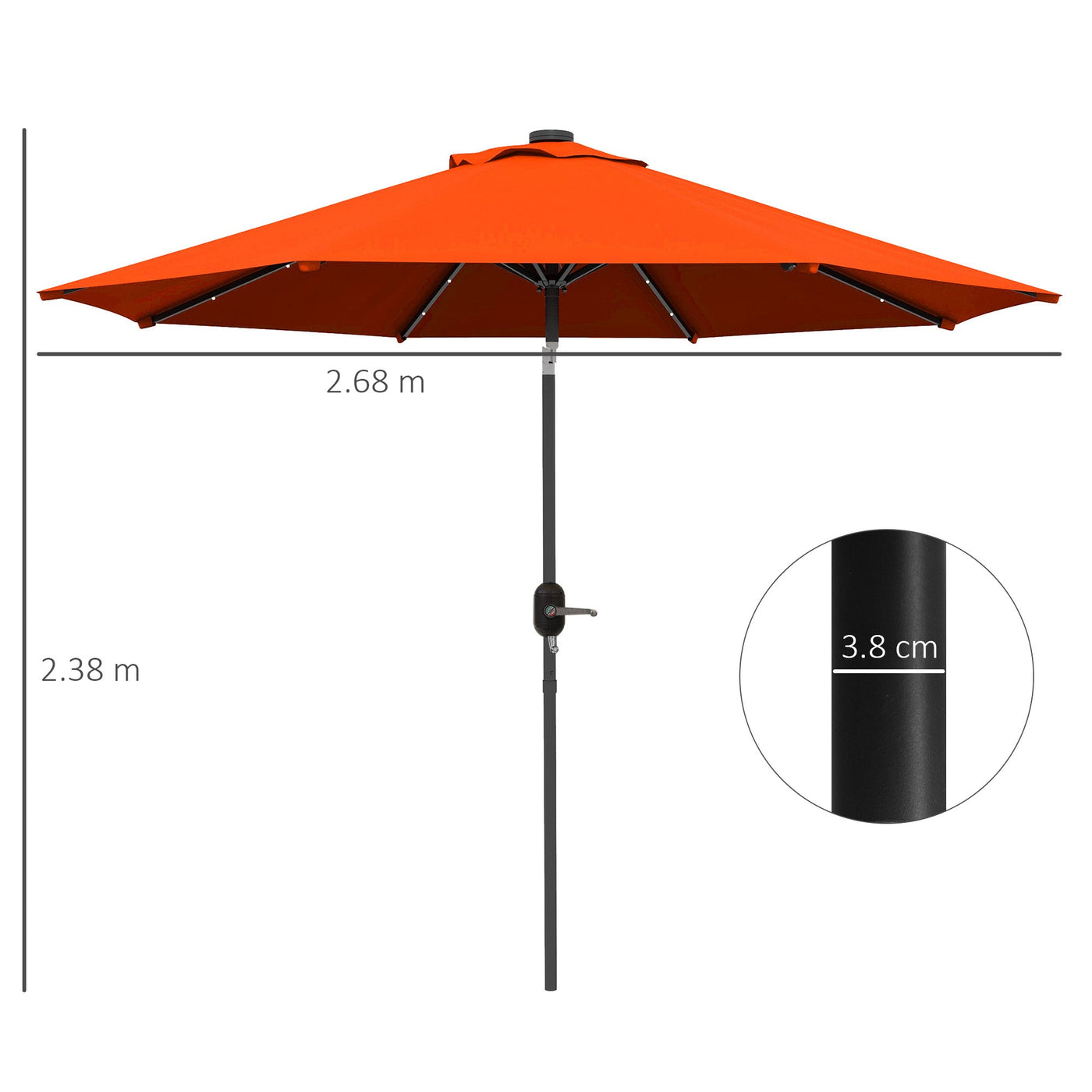 Outsunny 2.7m Outdoor Patio Garden Umbrella Parasol with Tilt Crank and 24 LEDs Lights, Orange - Orange