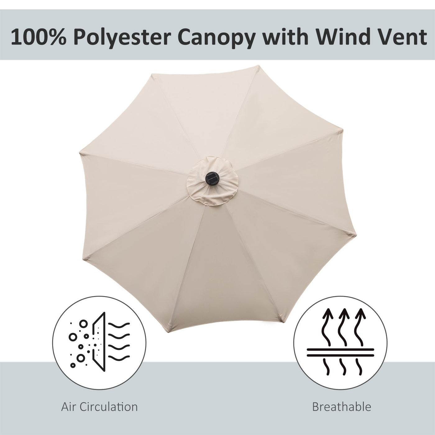 Outsunny 2.7m Patio Garden Umbrella Outdoor Parasol with Tilt Crank and 24 LEDs Lights (Cream) - Cream