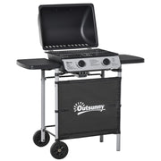 Outsunny 2 Burner Gas BBQ Trolley with Lid, 5.6 kW Gas Barbecue Grill with Wheels, Side Shelves, Black - Black