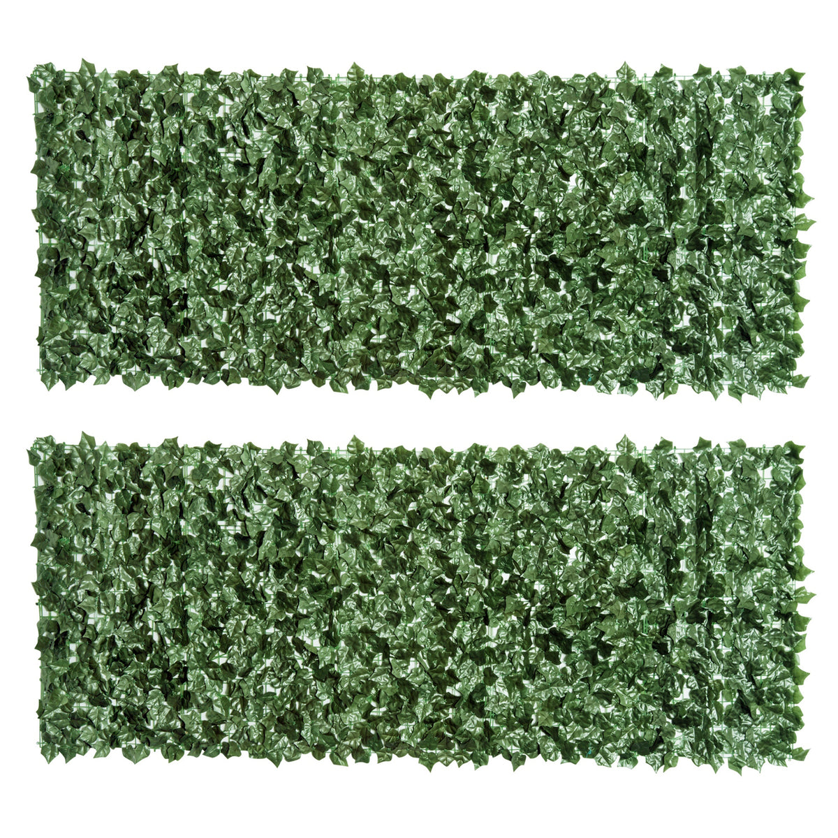 Outsunny 2-Piece Artificial Leaf Hedge Screen Privacy Fence Panel for Garden Outdoor Indoor Decor, Dark Green, 2.4M x 1M - Dark Green