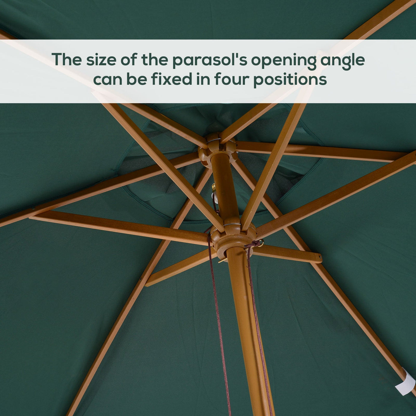 Stylishly make the most of the sun outdoors with this large garden umbrella from Outsunny. Built from wood, the main pole is extremely strong and stable and has been built to last for years to come. Made from 180g/√£≈Ω¬° polyester, the canopy will protect you from sunlight, UV and light rain, making it ideal for sitting out all day long. It's the ideal blend of beauty and functionality.