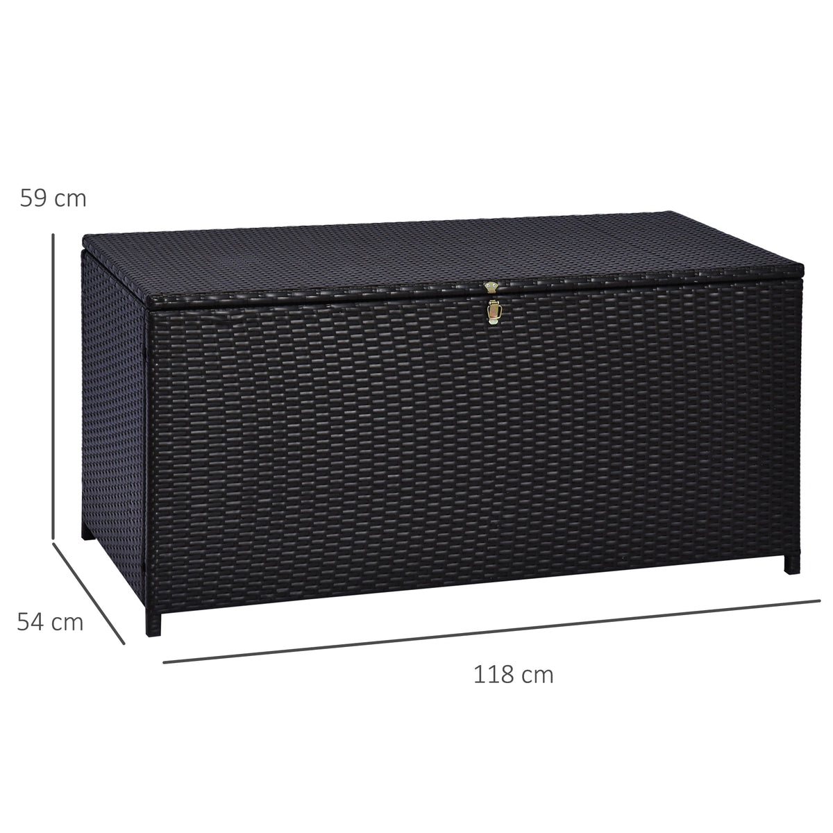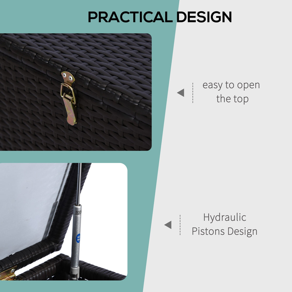 Outsunny 284 L Rattan Garden Storage Box, Outdoor Garden Storage Box with Gas Lift and Lockable Lid, Outdoor Wicker Rattan Chest Container for Garden Tools, 118 x 54 x 59 cm, Dark Brown - Dark Brown
