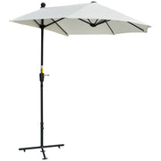 Outsunny 2m Half Parasol Market Umbrella Garden Balcony Parasol with Crank Handle, Base, Double-Sided Canopy, Cream White - Cream