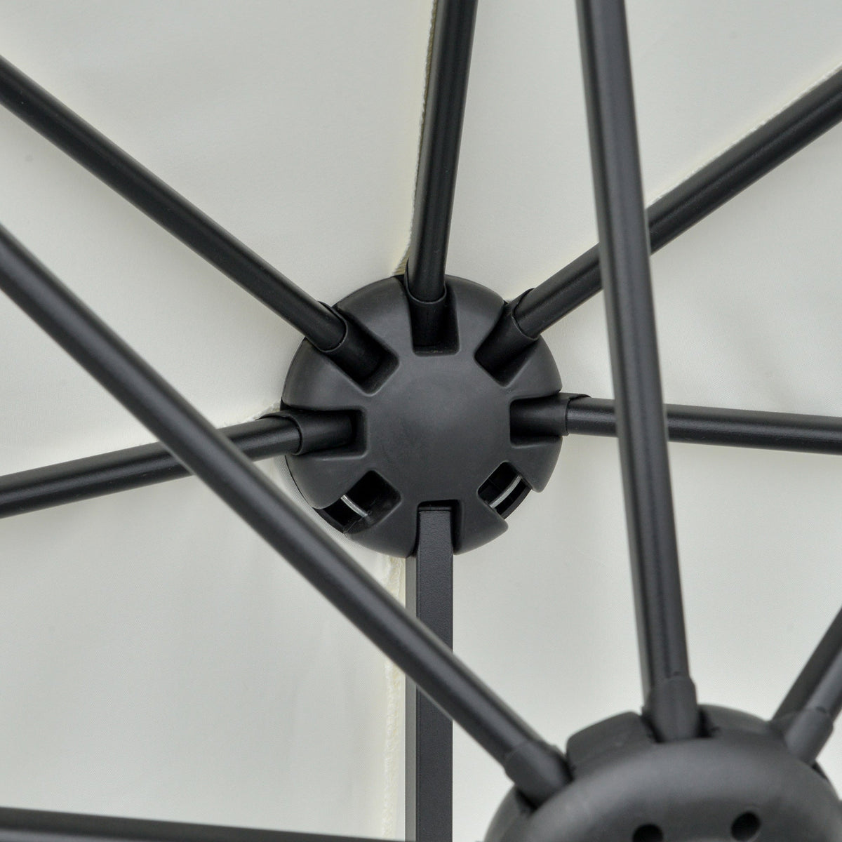 Need a garden parasol for the seasons head, but limited on space Go for this Outsunny half parasol. The half-cut size means it will stand against your wall without any gaps, creating safe shade whether it's against a wall, window or fence. Yet, the extra-long canopy creates more shade than standard, keeping everyone safely protected when relaxing in the sun. Features a crank handle to open and close effortlessly, with a base included to stand in place (just ensure you use weights).